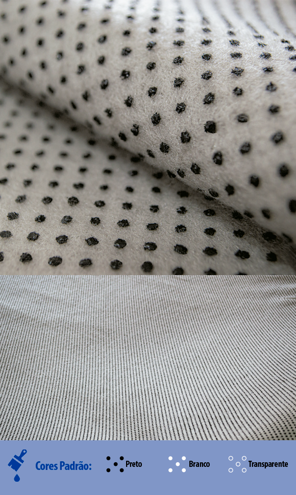 Material de fibra têxtil – FELTRO com aplicação de antiderrapante em polímeros vinílicos.